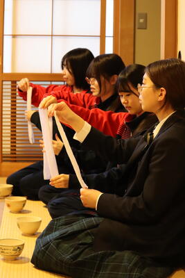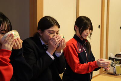 留学生の茶道部体験の様子です。