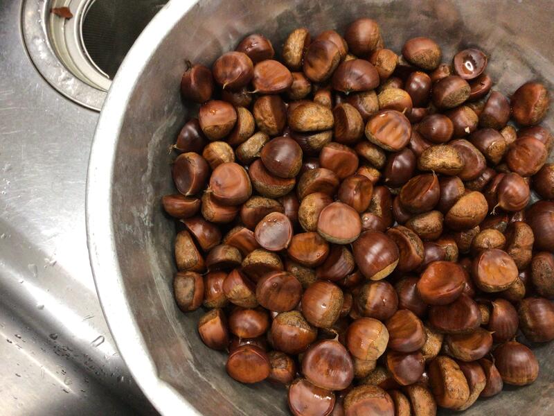 学校の敷地にも栗の木があり結構実がなっていたのですが、道を挟んだ隣のうちにはその何倍もの栗が実り落ちていました。生徒がその家にうかがい、栗をほしいとお願いをしてたくさんの栗をいただきました。話を聞くとその家の方は高齢の一人暮らしだそうです。