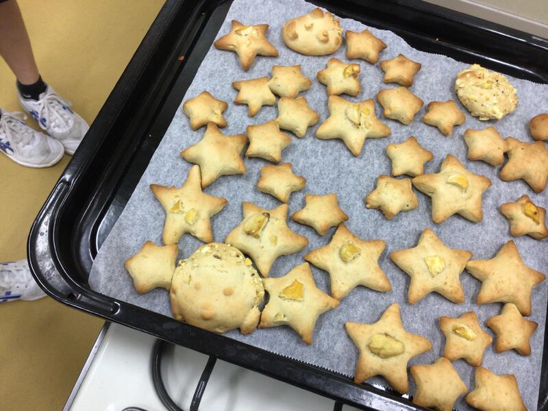 そこでもらった栗でお菓子を作ってその方に届けよう!という「栗プロジェクト」がスタート。早速調理を開始しました。できたお菓子は自分たちも試食をした後、栗をもらった家に届けました。届けたときにはすごく感謝されて、しばらく楽しく話して交流できました。