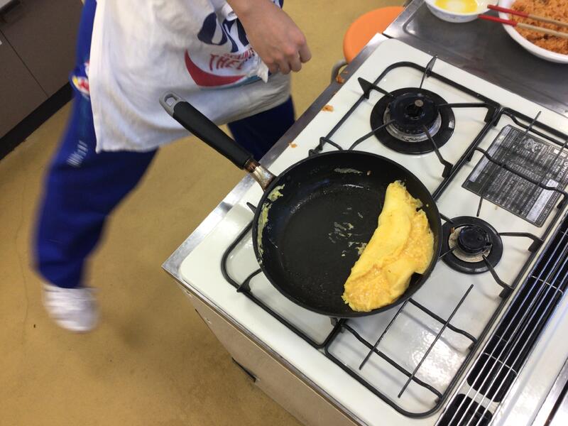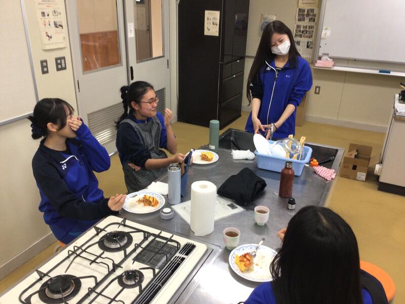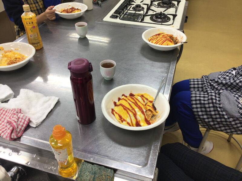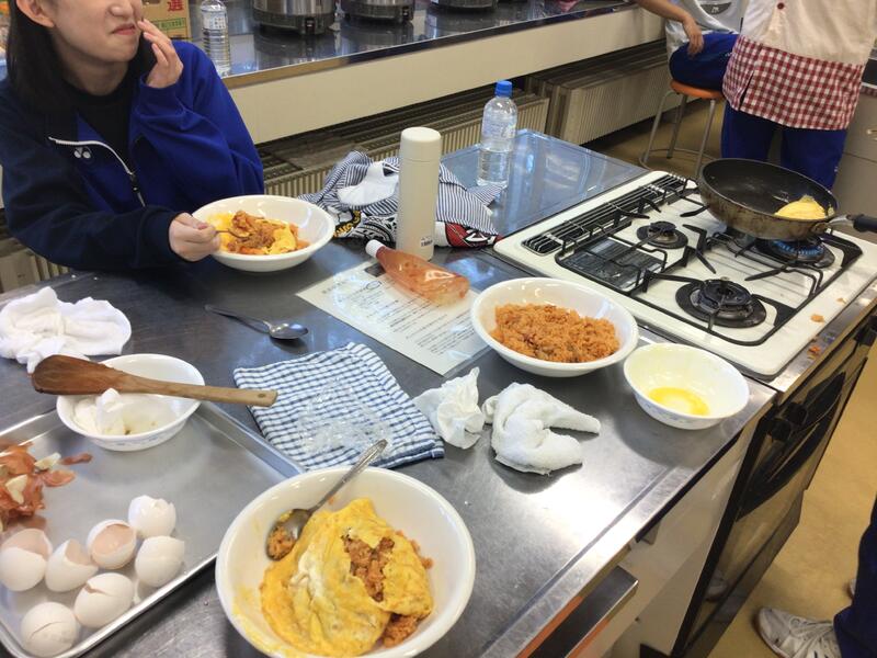 国際探究コースのフードデザインの時間でさまざまな料理にチャレンジしています。生徒の好みを聞きながら、その季節のものも取り入れながら幅広い分野に取り組んでいます。今回は「オムライス」でした。生徒によってオムレツの形や焼き加減を工夫して作り、おいしくいただきました。