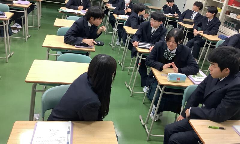 生徒は「考えがより深まった。」「元の意見からかわってより深く考えることができた。」など感想を話していました。